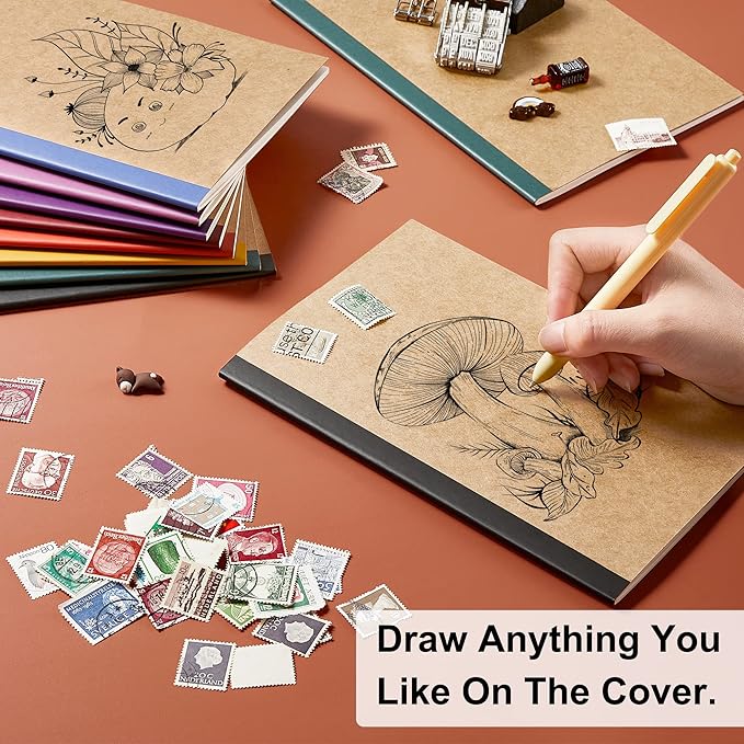 - Feela Composition Kraft Notebooks contain 16 kraft cover notebooks with jewel tone spines of 8 different vintage colors. There are 2 notebooks of the same color. Each of them measures 8.3” x 5.5”, which is easy to carry in bag and easily held by students.