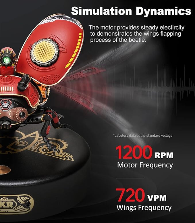 - 【Simulation of Flying Wings】 The metal 3D puzzle simulates the quick flapping of beetle's wing membrane. The kit uses planetary gear motor produces steady energy to make its wings flaps up to 720 times per minute. It requires 3 pieces of AAA batteries (not inclueded).