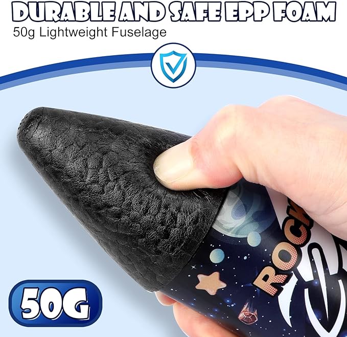 - Safe Landing: Our rocket toy fuselage is made of durable EPP foam, the built-in parachute which will be ejected when the rocket flies to the maximum altitude, and then it will land slowly and safely.Protective design allows you to not worry about hurt your kid or getting damaged when landing.