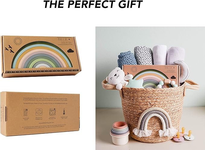 Silicone Rainbow Stacking Toy - Largest on The Market 12 Layer Montessori Toys for Toddlers Stacker Learning and Development Toy - Boho Baby Color (Soft Rainbow)