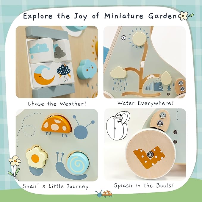 - Activity Center Wooden Toy: Pairpear baby walker comes with 9 activity toys including rotatable mirror,abacus,spinning gears,shape sorter and much more baby learning toys.Encourage toddllers imaginative play