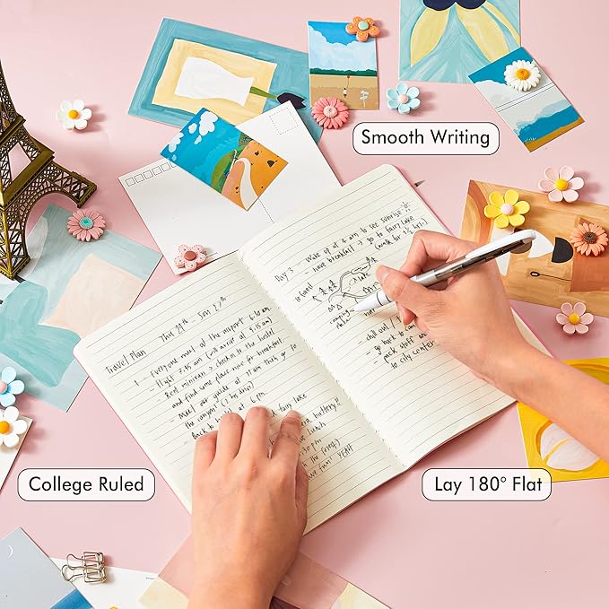 - These travel journals bulk for women have 92 blank lined pages (46 sheets), which would be sufficient for daily usage. The note taking notebooks have a smooth cover, round corners and tight stitching, which are designed to lay 180° flat. Some quick notes can help you remember important dates and find the page you want in a very short time.