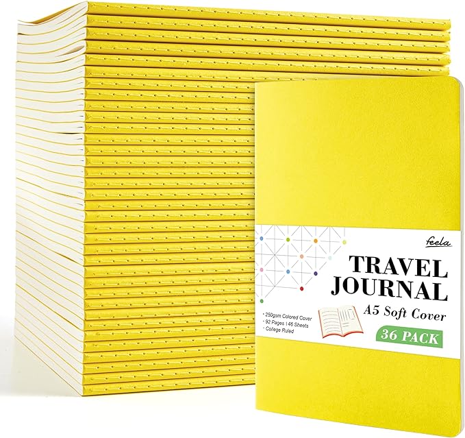 - Feela 36 Pack Soft Cover Journals include 36 lemon yellow A5 college ruled soft cover travel journals. 250 GSM colored paper cover outside and 80 GSM smooth writing lined pages inside.