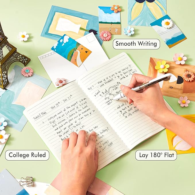 - These travel journals bulk for women have 92 blank lined pages (46 sheets), which would be sufficient for daily usage. The note taking notebooks have a smooth cover, round corners and tight stitching, which are designed to lay 180° flat. Some quick notes can help you remember important dates and find the page you want in a very short time.