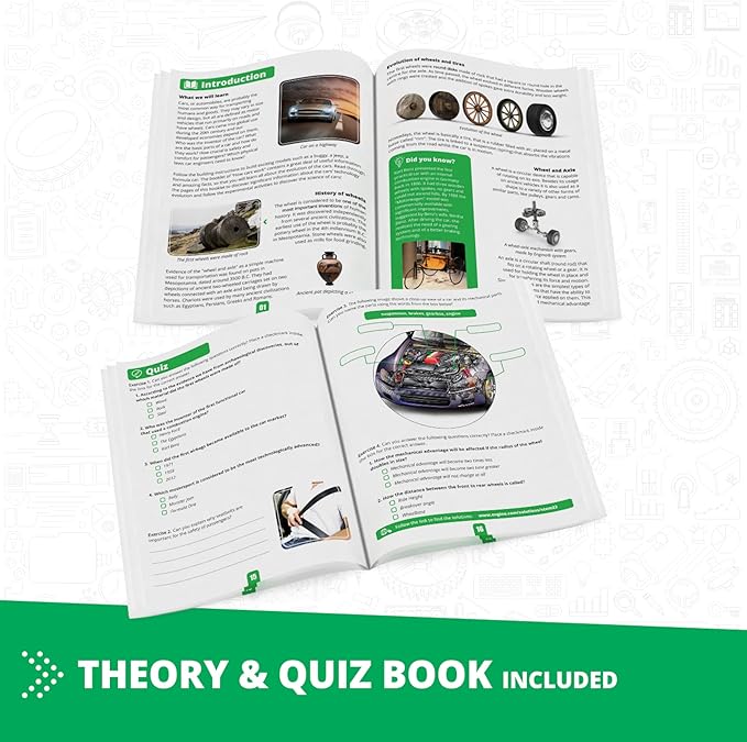 - KIDS LEARN all about cars, what are the basic parts of a car and how do they work. They can build 10 working models such as formula, sports car, micro car and more.