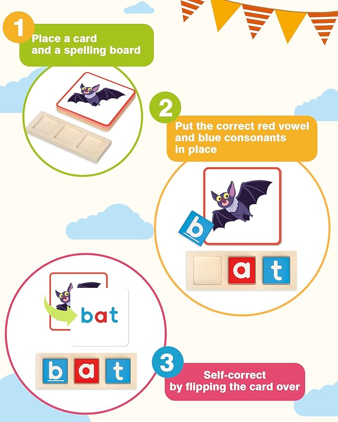 - Fun Learning Activity Games: This CVC word flash cards set is an interactive learning game for 3 4 5 6 year old boys & girls. The colors and pictures can catch the kid’s eyes and keep their attention, which can help them have fun while learning reading, spelling and phonics skills.