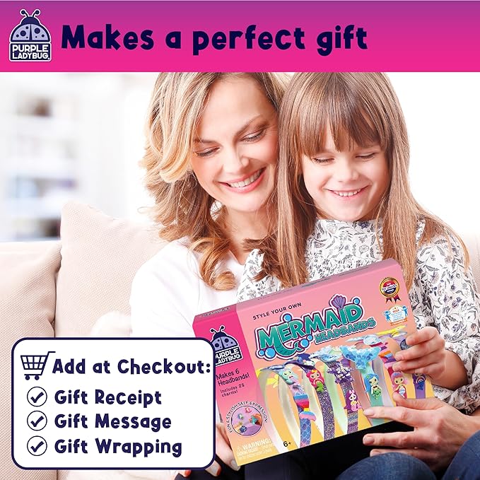 PURPLE LADYBUG Mermaid Headband Kit - Party, Sleepover, Playdates, Summer Activities for Girls, DIY Mermaid Hair Accessories & Crafts, Birthday Gift for Girls Ages 6-10