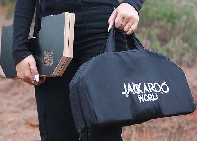 - Easy and Portable: The portability of Jackaroo Game is a result of its special foldable design. It is also compact and lightweight, ensuring it takes up minimal space and is easy to handle. It's a cards and marbles board game that can be effortlessly moved in its exclusive Jackaroo World bag, making it both easy to carry and visually appealing. Pegs and Jokers can easily be stored. This enhances the enjoyment of the u Dogg board game 4 player experience, allowing you to play this marbles and jokers board game wooden wherever you go.