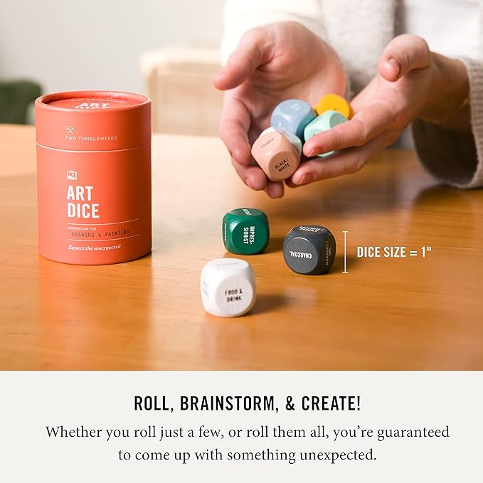 Two Tumbleweeds Art Dice - Drawing & Painting Game for Adults, Artists & Teachers - Set of 9 Dice for Creative Inspiration - Drawing Prompts for Studio and Classroom - Gift for Artist - 1+ Players