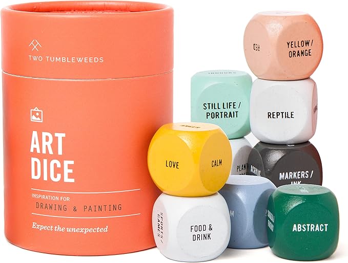 - DEVELOP YOUR SKILLS & CREATIVITY: Art Dice encourages you to break out of your comfort zone and vary your medium, style, subject, mood, texture, setting, and color.