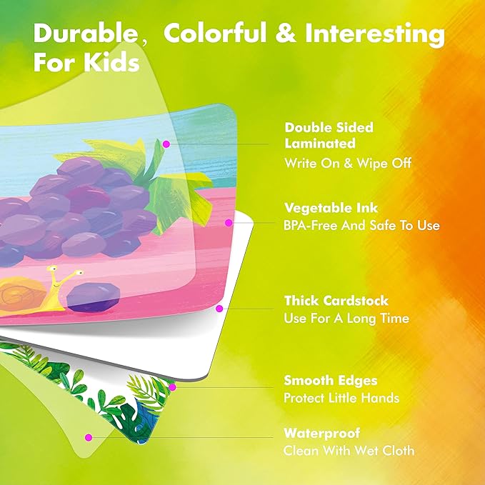 - SAFTY AND HIGH QUALITY: Made of thickened cardboard for durability, neither bend nor fold. Printed with non-toxic plant ink, which will not release harmful substances. The round and smooth edge is harmless, suitable for small hands. Also, it is easy clean with a damp cloth.