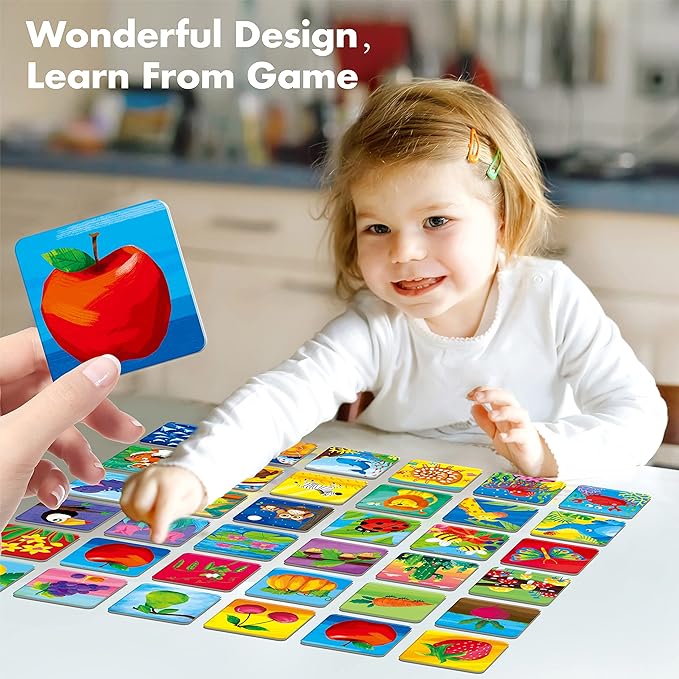 - ATTRACTIVE MATCHING GAME: This nature themed card set is a funny matching game, showing different adorable animals, fruits and plants, which will arouse kids’ curiosity, improve focus and increase memory during the game time. In addition, playing with a group will help enhance the ability of expressing.