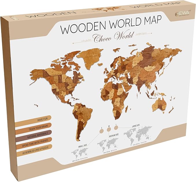 - Explore Diverse Destinations: Discover the world in your own hands with our 3-layer map of the world for wall puzzles from premium birch plywood. Enjoy that sense of achievement of building a unique 3D wooden wall world map puzzle!