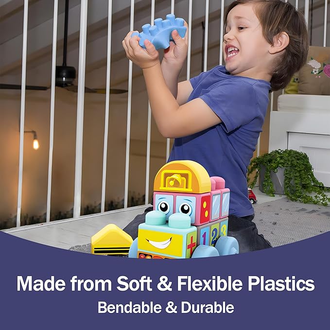 - Safe for Baby: Crafted from BPA-free, non-toxic TPR rubber, these baby soft building blocks for kids are certified safe for infants and toddlers. Each block of these soft blocks for kids ages 4-8 is oversized with smooth, rounded edges—perfect for tiny hands to grasp and explore. No small parts means zero choking hazards, so your little one can safely chew, stack, and play worry-free.