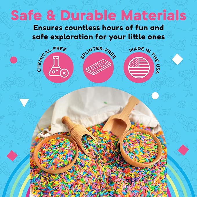 - Handcrafted in the USA: Crafted from premium birch or maple hardwood, these wooden sensory bin tools are built to withstand countless hours of play. You can trust in the exceptional quality of this kids wooden tool set, which is crafted in the USA.