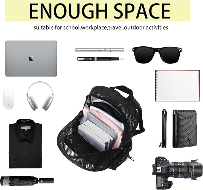 - 【Versatile Use】This mesh backpack is suitable for a variety of occasions. It meets school security requirements by allowing for quick inspection of contents, making it ideal for educational environments. It's also suitable for travel, hiking, swimming, and other outdoor activities, serving as a reliable accessory for your adventures.