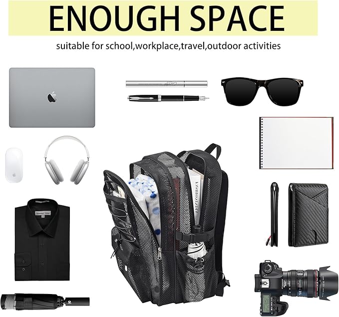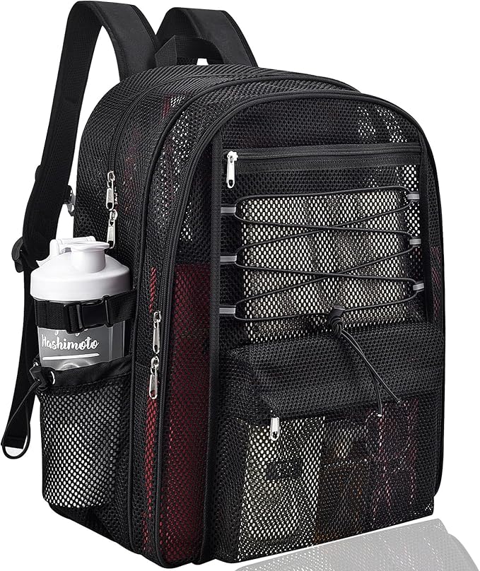 - 【Versatile Use】This mesh backpack is suitable for a variety of occasions. It meets school security requirements by allowing for quick inspection of contents, making it ideal for educational environments. It's also suitable for travel, hiking, swimming, and other outdoor activities, serving as a reliable accessory for your adventures.