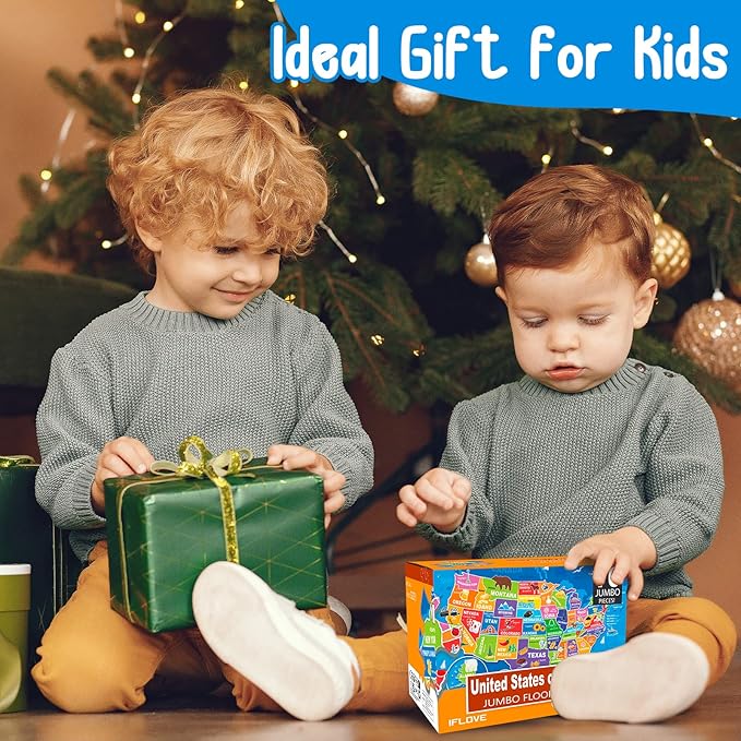 - Amazing Gifts for Kids:Total dimension of 35.4x23.5 inch when laid out. Features puzzle pieces with accurate shapes of each state and showcases interesting landmarks in different locations.Comes in a gift box for carrying and easy storage. A good idea kids gifts of birthday, Christmas,Easter for Ages 4-8, 5, 6, 7, 8-10 year olds