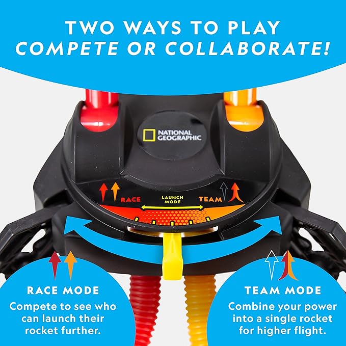 - EVERYTHING INCLUDED - This rocket launcher science kit contains everything kids need to race or collaborate on their launches: 2 foot pumps, dual launch pad, and 4 foam rockets. It's an awesome addition to your collection of outdoor games and toys!