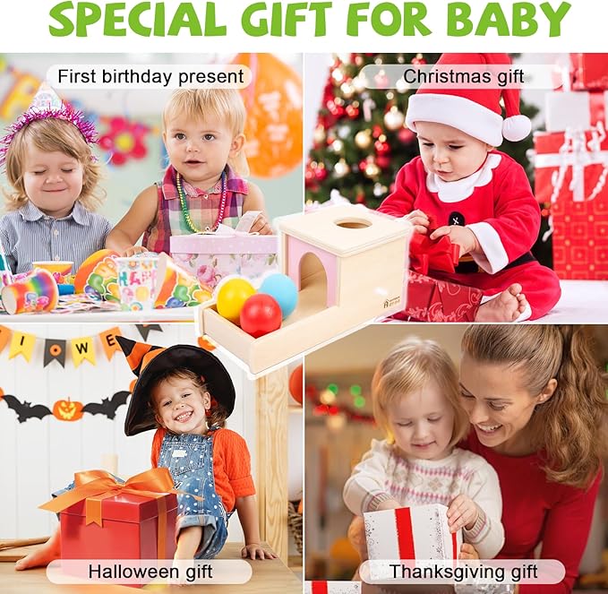 - 🎁【Suitable as a Thoughtful Gift】: The Montessori Object Permanence Box with Tray and Three Balls makes an ideal and thoughtful gift for infants between the ages of 6 to 12 months. Its educational value, coupled with its visually stimulating design, makes it a wonderful present that encourages learning, exploration, and development in young children. The option of a pink door adds a touch of personalization, making it more suitable for girls.