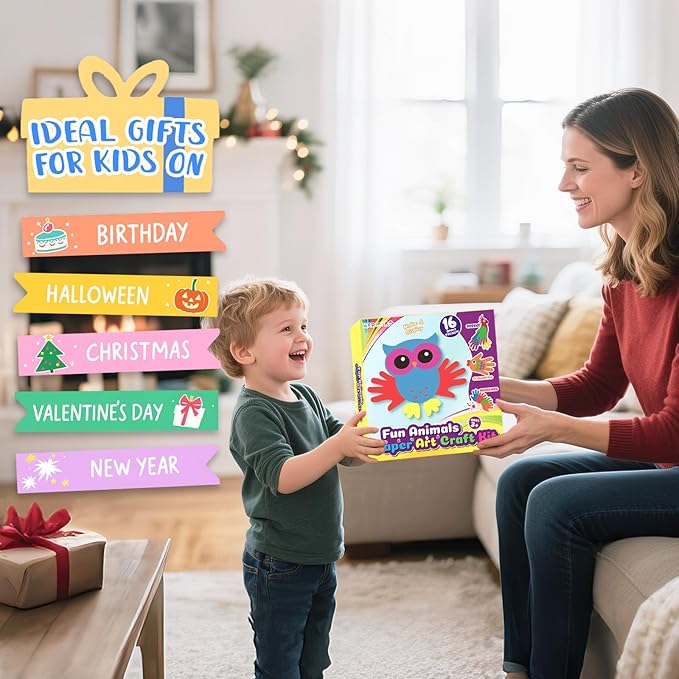 - Funny DIY Handprint Crafts Kit: The Package contains 1 gift box, 16 cute animal pattern cards, 1 double-sided adhesive tapes. It can unleash kid's creativity and fun with this delightful craft kit, your children will discover a fantastic universe in this paper crafts set, let them have a better way to take a fun animal world.