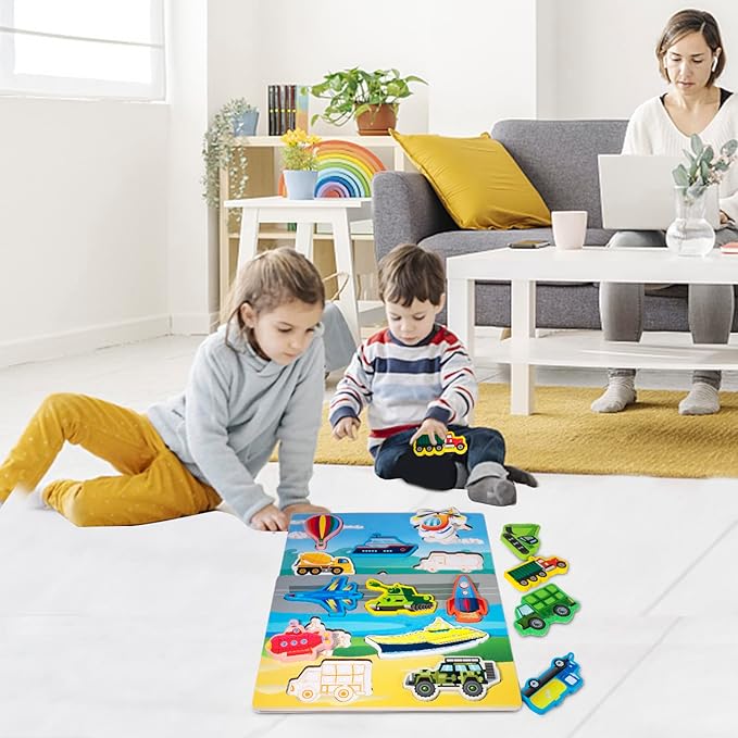 - *FUN AND CREATIVE : Our puzzles for young kids include high-quality, chunky wooden pieces to ensure tiny hands can easily grasp the pieces and complete the puzzle. The pieces display full-color pictures beneath them to offer visual clues.