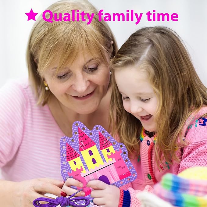 - ๐ธ Make 10 Easy Projects ๐ธ : Make a total of 10 beginner Lacing Art & Craft kit with princess, unicorn, castle, mermaid, sea animals. Tools and Instructions also included for the craft. Train your kids with hand-eye coordination and color matching skills together.