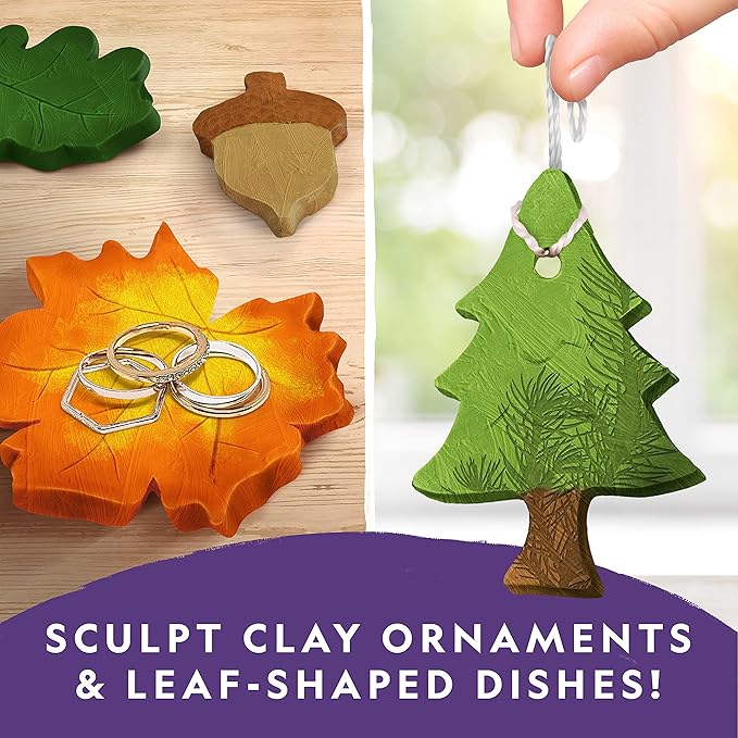 - CREATE AIR-DRY POTTERY - Kids can make 4 nature-themed pottery pieces with the materials in this kit! They'll craft 3 ornaments and 1 ring dish, with paints and brush included to personalize their art! They can display them proudly or give as gifts!