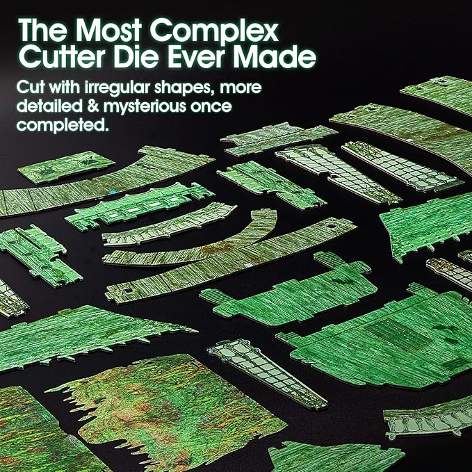- COMPLEX CUT FOR RICH DETAILS - This puzzle is cut into irregular shapes and the 360 pieces are all different. Its intricate design is a challenge for puzzle lovers. The model features two bridges and a row of cannons on each side, with skeletal statues and ornate decorations on the rotten wood hull. Its bright colors in the dark and distinctive design make it stand out.
