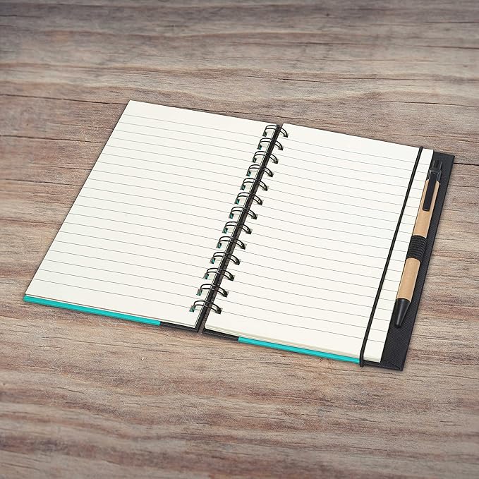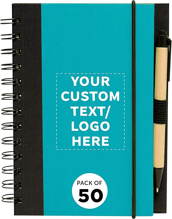 DISCOUNT PROMOS Custom Eco-Friendly Spiral Notebooks with Pens – Set of 50, Perfect for Mother’s Day Gift – Bulk Pack for School, Office, or Home – Black