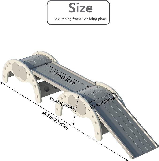 - 🧡 [Solid material and] It is absolutely safe for children. The climbing arch and slide suit is made of HDPE material, free of BPA, non-toxic and odorless. All parts are smooth polished, smooth and burr-free, ensuring that your children play and grow in a safe environment.