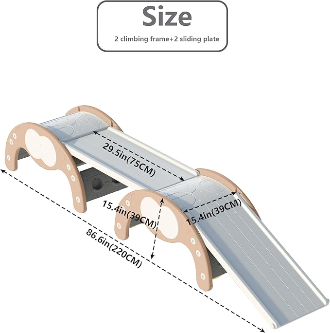- ❤️ [Perfect climbing toy for children] This set of Montessori climbing suit has four functions. One side of the skateboard can be turned over as a slide and the other side can be used as a rock climbing, and the arch can be turned over as a balance plate or a rocking chair. A variety of play methods create a variety of fun.