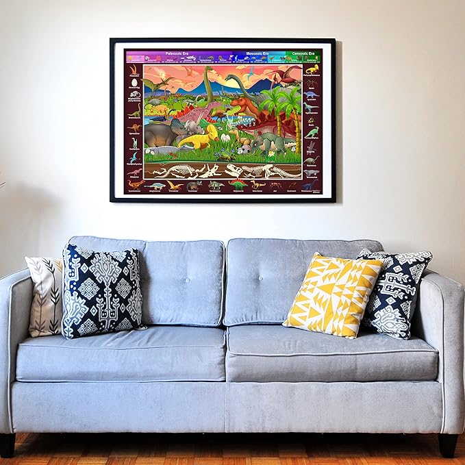 - 【Educational】 - Great colorful puzzle to stimulate Kid’s interests in Giant Dinos such as T Rex, Triceratops, Stegosaurus, Velociraptor, Diplodocus & Pterodactyl. The puzzle also identifies each of the dinosaurs and it also features a timeline showing the evolution of life on this planet through the Paleozoic, Mesozoic and Cenozoic Era. By reading interesting facts printed on the box, students can learn about the meaning of dinosaur names and the food webs. Recommended for kids ages 8+.