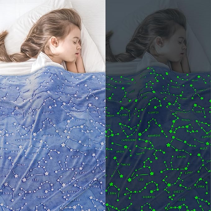 - Multipurpose Blanket: This glowing constellation blanket can not only be used on the bed, sofa, car, but also as a playful fortress of glowing blankets! And it's also lightweight, easy to carry, such as going out, camping, traveling and pajama parties. Also, the blanket can be used as a kids blanket for school nap, cuddle, stroller, car seat blanket. Friends who use it will love sleeping under this amazing light up blanket, the good companion especially for cold and warm nights.