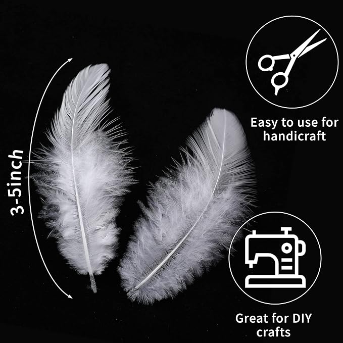 - Great Product quantity:300 pcs white craft feathers in a package,100 pcs per packet