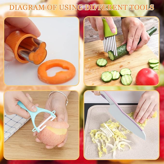 - The Package Includes: You will receive 1 piece of wooden kids knife, 1 piece of cooking knife, 3 pieces serrated edges toddler knives, 1 piece cutting board, 1 piece Y peeler, 3 pieces sandwich cutters, 1 piece crinkle cutter, a variety of styles and uses of toddler kitchen tools can meet the needs of kids usage requirements