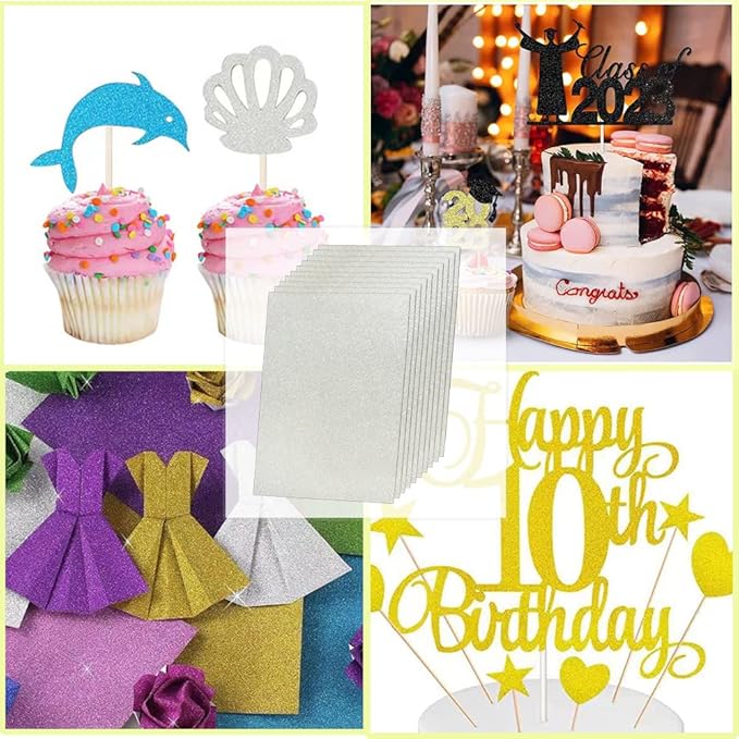 - ❀❀10 packs thick and sturdy silver glitter cardstocks, made of 250Gsm glitter cardstock paper,perfect for adding a touch of sparkle to your cupcake toppers, greeting cards, scrapbooking and more