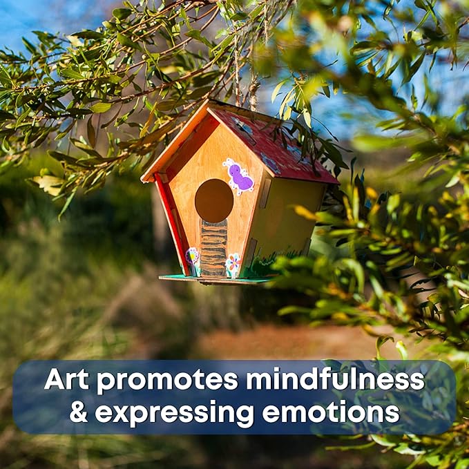 - High Quality Materials - The wood bird houses are made from solid wooden boards surfaces which are smooth with laser cuts & the non-toxic paint are safe for children. These DIY wooden bird houses for painting are perfect wood crafts for kids.