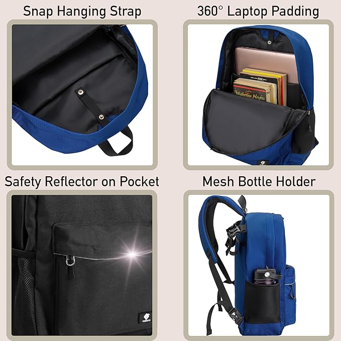 - SPACIOUS COMPARTMENTS: The large main compartment in our kids’ backpack features a built-in laptop sleeve that can fit a 17” laptop. There is also a spacious front zipper pouch and two external mesh water bottle pockets. Enough space for kids, teens, or adults.