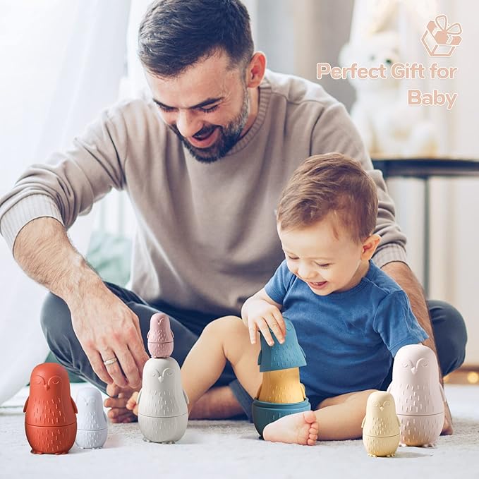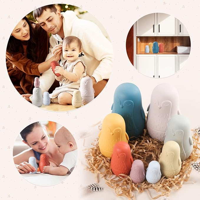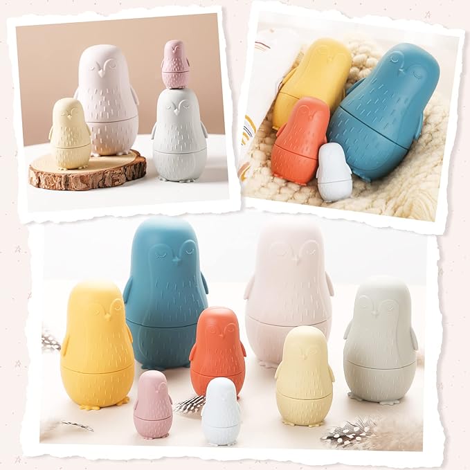 OESSUF Nesting Dolls | Russian Silicone Nesting Dolls for Toddlers | Easter Toys Matryoshka Doll Montessori Educational Toy | Penguin Stacking Nesting Doll Toys | Gift for Kids 3 Years Up