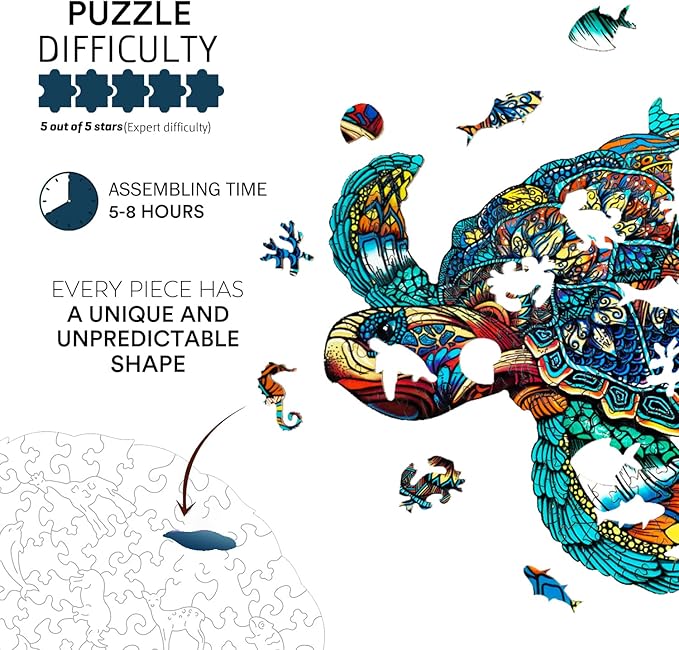 Jigfoxy Wooden Puzzles for Adults, Sea Turtle Wooden Jigsaw Puzzles,Unique Animal Shape Puzzles, Christmas Thanksgiving Gifts for Family Turtle Lover(XL-22.8 * 19.3in-631pcs)