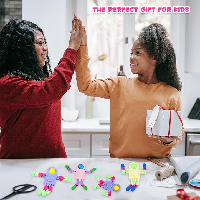 12 Pack Fidget Sensory Spinner Toys, Transformable Chain Robot Fingertip Toy,Pinata Goodie Bag Stuffers Birthday Valentines Day Gifts for Kids,Treasure Box Classroom Prizes