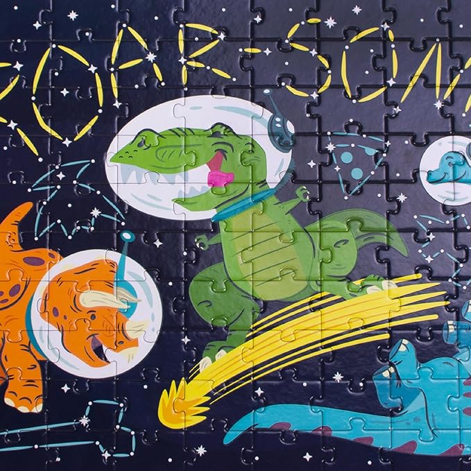 - Gift of Exploration: The 100-piece space dino puzzle glows in the dark, featuring dinosaurs, constellations, planets, stars, and spaceships, making it a great gift for any occasion!