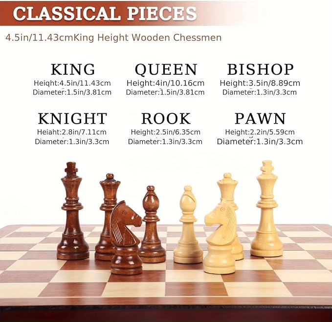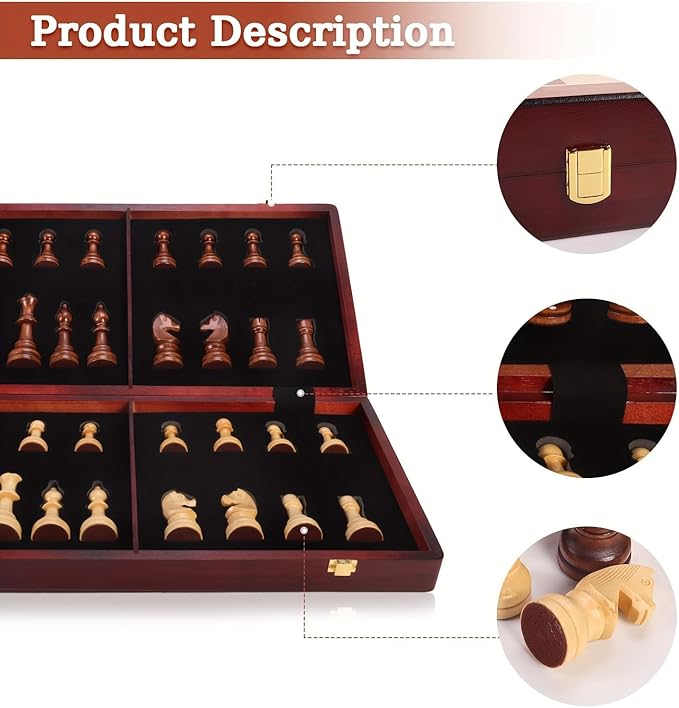 - Perfect Gift for Chess Enthusiasts: With its stylish design and high-quality materials, this foldable wooden chess set makes a thoughtful and impressive gift for chess lovers and collectors. It is an excellent addition to any chess player's collection.