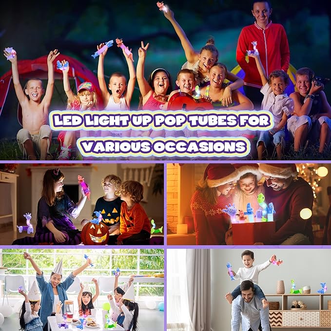 Animals Fidget Toys for Toddlers: 6 Pack LED Animal Pop Tubes for Kids 3 4 5 6 7 8 Year Old Girls Boys Halloween Birthday Gifts Autism Sensory Toy for Kid Age 3-8 Tube Light Up Party Favors