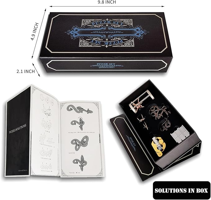 - 【3D Metal Puzzle with Storage Box and Solutions】It is a great puzzle gift for anyone aged 12 to 105. It's nice size makes it suitable for small and large hands alike. Both boys and girls, as well as men and women, will enjoy this unique novelty gift.Metal Puzzle can be played individually or with a group, making it a versatile gift option. Whether it's for birthdays, Halloween, Christmas, or party favors, this educational mind puzzle is sure to be a hit.