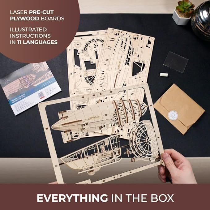 - Everything in the box: Similar to other UGEARS 3D model building kits, our 2.5D airship model kits don’t require extra tools or glue. You can assemble this 49-piece beginner DIY project in about 30 minutes