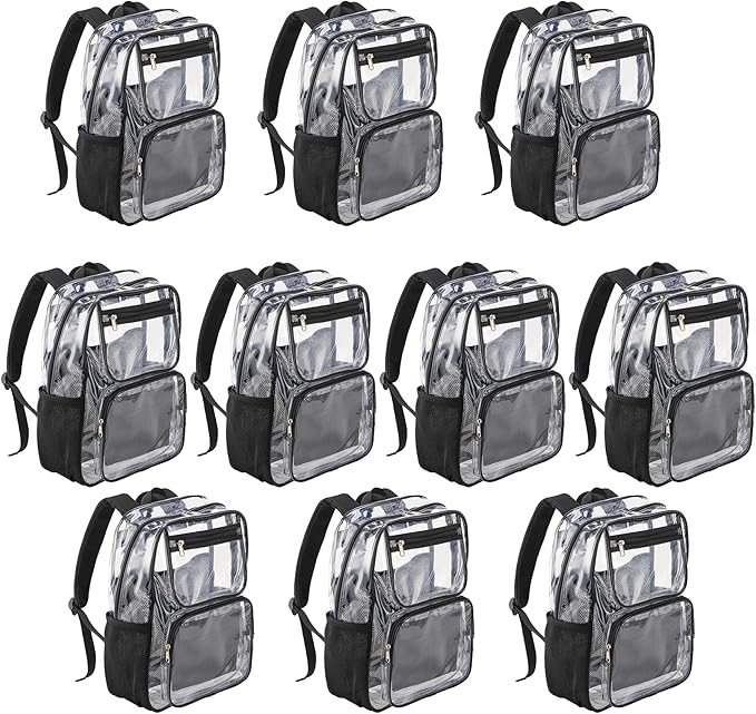 - Stay organized with this 10-pack of bulk clear black backpacks, perfect for kids of all ages for school or outdoor activities