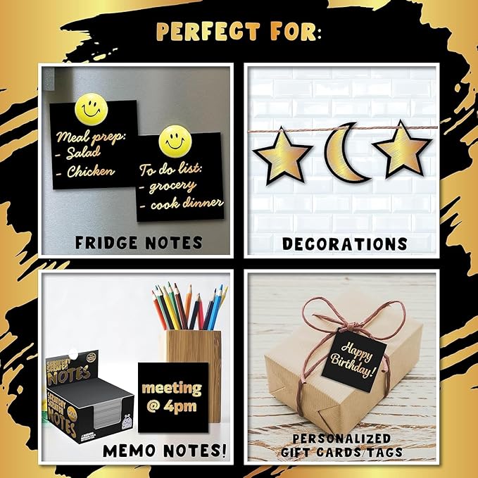 - So many uses! Use this black scratch off paper as an adult doodle pad, for kids crafts, to write thank you cards or I love you notes, to jot to-do lists, as a unique office memo or to play tic tac toe.