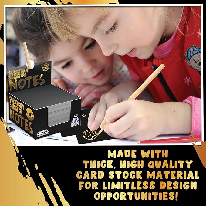 - High quality paper! This is not flimsy notepad style scratch drawing paper but super thick and high quality card stock material measuring 3.5 x 3.5 inches; gold scratch paper is unlined for versatility.